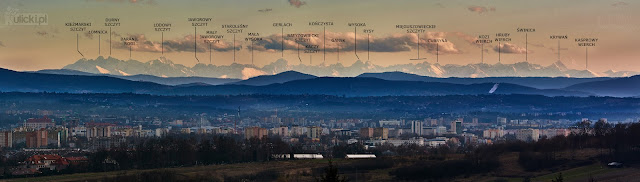 Az alábbi feliratos panorámaképet 2016. február 22 én készítette Jan Ulicki lengyel fotós Kis-Lengyelország fővárosából, Krakkóból. „Nagyon szeles, meleg idő volt, amely megfelelő feltételeket teremtett egy ilyen távoli fotó elkészítéséhez. Kb. délután 3 óra körül értem vissza Krakkóba, amikor egy ponton azt észleltem, hogy a Tátra szinte kézzel fogható közelségben látható”. A panorámakép négy állóképből állt össze, nagyításhoz kattints a képre!
