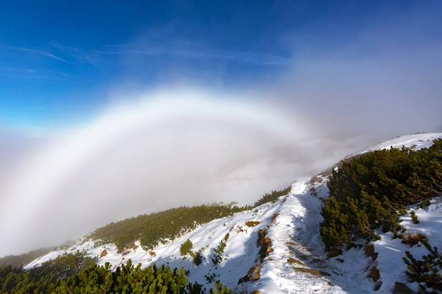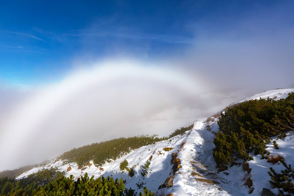 Ködív a Tátrában, melyet nem esőcseppek, hanem a köd sokkal kisebb vízszemcséi okoznak, ezért nem válnak benne külön a színek, hanem egyenletesen fehér színű.