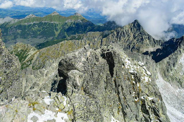 A Fecske-torony, a Lomnici-csúcs és a Bibircs a Gerlachfalvi-csúcsról.