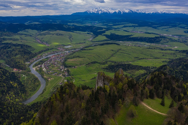 A Dunajec és a Vörös Kolostor, háttérben a Tátrával a Korona-hegy közeléből.