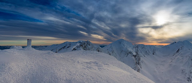 Téli, naplemente idejére összpontosító túra a Chocholowi-völgy csúcskoszorúján.