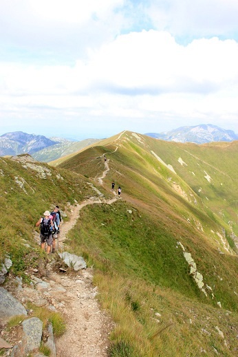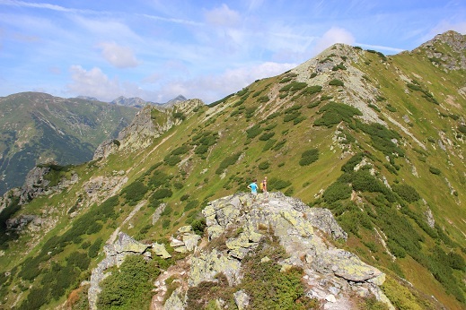Csak rövid ideig mentünk a Racskó-völgyben, az Alsó-réten a zöld jelzésen befordultunk az erdőbe, és megkezdtük a felfelé való kapaszkodást. Az erdőn át nehéz, meredek és kanyargós út vezet, és az ígért áfonyának nyomát sem láttuk, csak csupasz bokrokat találtunk. Emlékszem, a völgy szájánál lévő tábla arra figyelmeztetett, hogy a völgyben éhes mackókkal találkozhatunk. Lihegtünk és izzadtunk. Találkoztunk néhány turistacsoporttal. „Emberek, rossz útirányt választottak” – hívta fel a figyelmünket két idősebb túrázó. „Errefelé menedékház sincs, még egy sört sem kaphatunk” – nevettünk, és mentünk tovább. Hamarosan felértünk a meredek emelkedő végére. Magunk mögött hagytuk az erdőt, majd a törpefenyőt, és kezdtük felfedezni a gyönyörű kilátást. Bizakodtunk, fotóztunk…