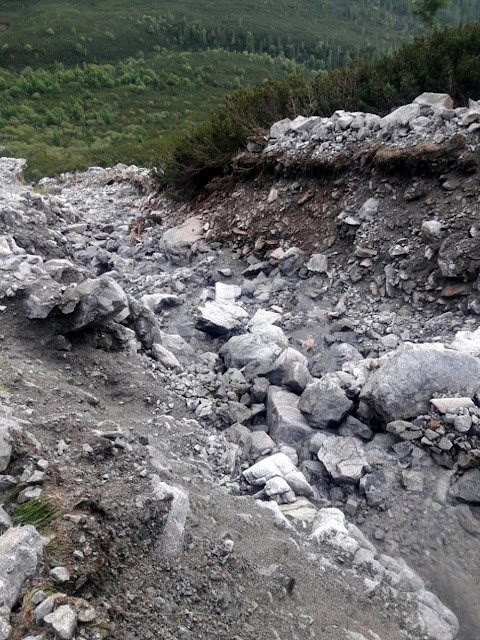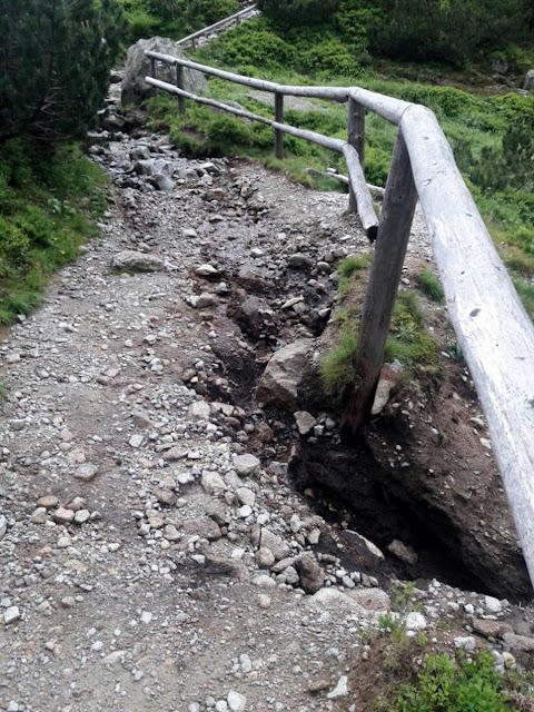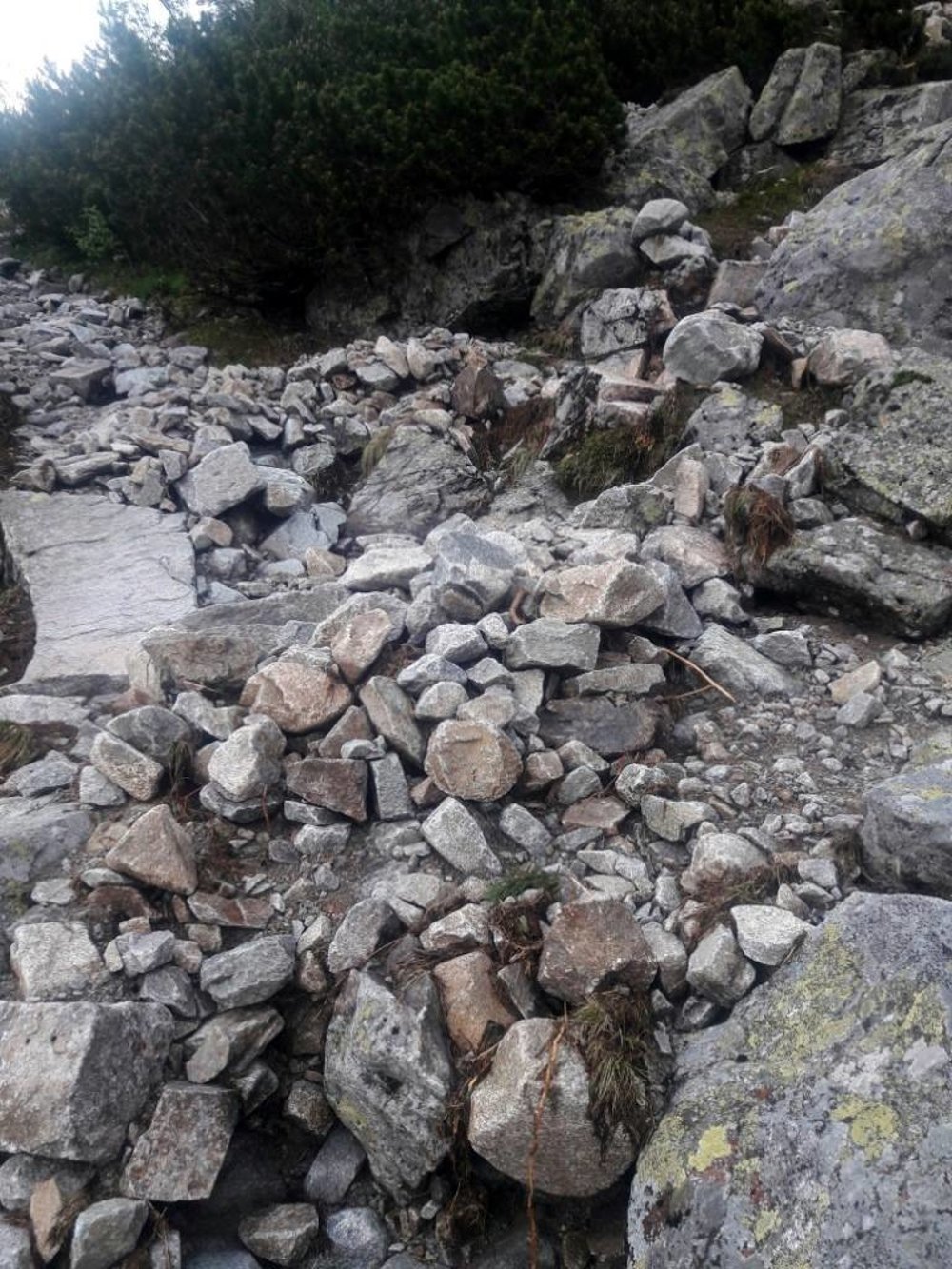 A hirtelen lezúduló nagy mennyiségű csapadék következtében kőtörmelék csúszott a turistaútra, amely több helyen is elmosta a nyomvonalat, az ezeken történő átkelés viszont veszélyt jelent a turisták biztonságára.