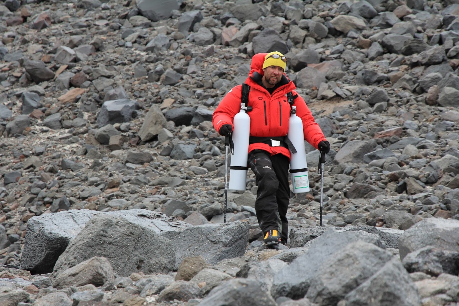 Nem csak a súly nehéz azonban, sokszor a magunkkal vitt felszerelések (pl. búvárpalackok) kiterjedése, alakja, érzékenysége is komoly kihívást jelent. Ezek kezelésére nem igazán vannak bevett módszerek, így gyakran a múltban (pl. múzeumi fényképeken) próbálunk kutatni, hogy a 8000 méteres csúcsok megmászói, legendás alakjai a kezdeti időkben milyen ötletekkel álltak elő palackjaik elhelyezésére. Mi vált be és mi nem. Ezek a tárgyak főként a kitett, meredek, szűk, sziklás peremeken, ösvényeken okoznak gondot. A Sas úthoz hasonló klettersteig jellegű utak kiváló lehetőséget biztosítanak az ilyen speciális felszerelés kezelésének, szállításának kitalálására, tökéletesítésére. Ott jártunkkor sajnos akkora hó volt, hogy csak a Sas út beszállásáig (Zawrat-hágó) kockáztattuk meg a túrát, és később, a Triglavon klettersteigeztünk. A köd, a szél és a mély hó együtt ugyanakkor mindig kiváló erőnlét és tájékozódási készség fejlesztő, valamint kiváló felkészülési lehetőség a vészhelyzetekre (ezért próbálkoztunk ilyen körülmények között is). A merülés alatt ránk lecsapó hóvihar okán igencsak hasznosnak bizonyult ez a tátrai út is. Annak ellenére, hogy a chilei expedíciót mindössze ketten hajtottuk végre, tátrai – és egyéb környező országbeli – kalandjainkra természetesen gyakran elkísérnek barátaink is”.