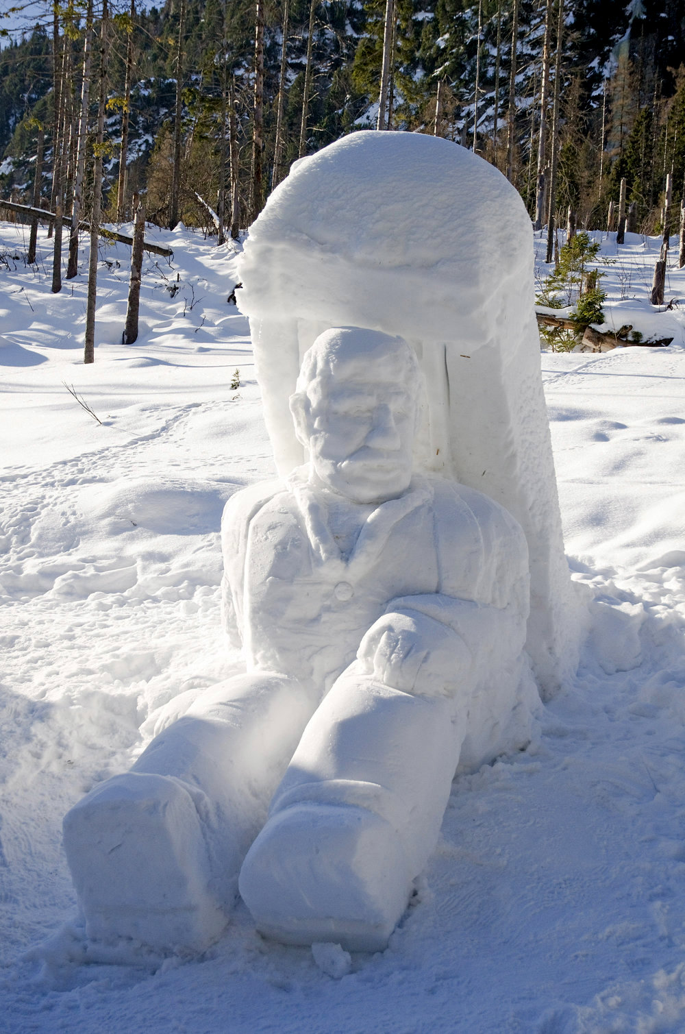 Az utóbbi években már megszokhattuk, hogy a magas-Tátrában, a Rainer-kunyhó közelében a kunyhó bérlője, Peter Petrás minden évben felépíti a hóból készült Betlehemet. Ez természetesen idén is megtörtént, a Hó-betlehem ma is látható a szokott helyen, az ismert bérlő azonban néhány nappal ezelőtt azonban egy újabb hószoborral lepte meg az arra járó turistákat. A kunyhó mellett egy tátrai teherhordó szobrát láthatják, melynek magassága eléri a 3,5 métert. Ha másért nem, ezért mindenképpen érdemes elsétálni a Tarajkáról (Hrebienok) mindössze 15 perces sétával elérhető Rainer-kunyhóhoz (Rainerová chata).