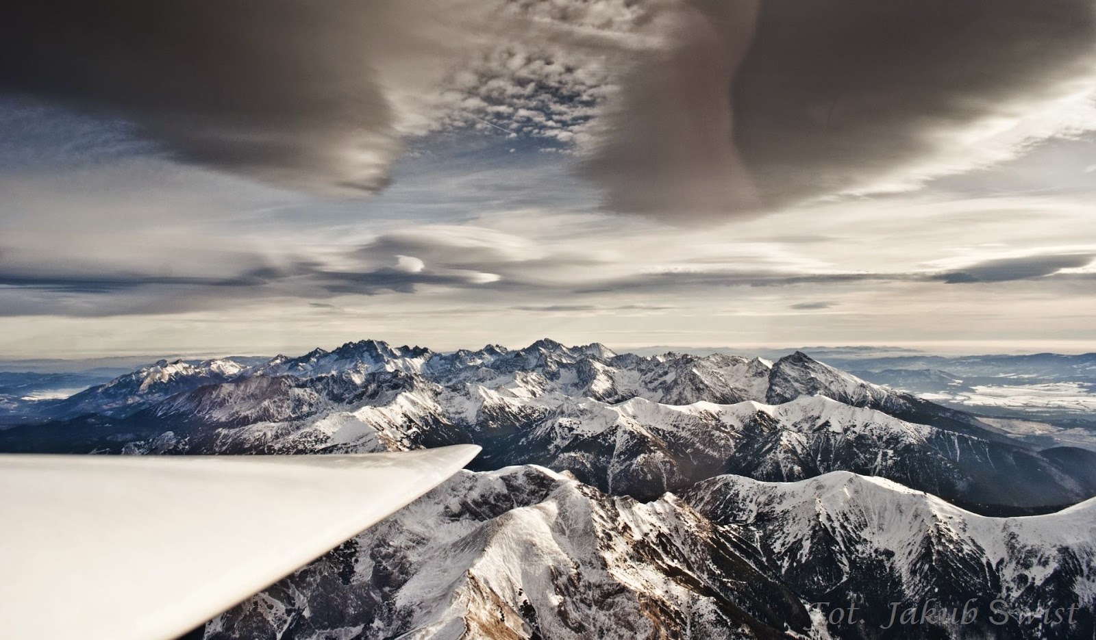 Jakub Świst, a nowy targ-i Aeroklub tagja 2014. december 13-án, szombaton ismét repült egyet a Tátra felett vitorlázórepülővel. Mint azt már korábban közzétett fotói alapján is sejthetjük, a pilóta rendszeresen repül a Lengyel-Tátra felett, miközben gyönyörű felvételeket készít a Tátráról a vitorlázórepülő pilótafülkéjéből. Bár december 13-án a z időjárás nem tette lehetővé, hogy ismét meglovagolja az ún. Tátra-hullámot, de a két repülés során így is több különleges fotót sikerült készítenie a hegységről. Nézzük hát, milyennek látta a fotós a Tátrát december 13-án, szombaton, egy vitorlázórepülő fedélzetéről: